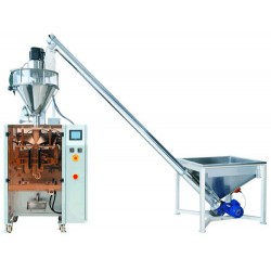 粉劑包裝機(jī)由一臺螺旋計(jì)量機(jī)和一臺立式充填包裝機(jī)組成,特別適宜較大粉塵的超細(xì)粉狀物料的計(jì)量包裝,集計(jì)量、制袋、包裝、封口、打印、計(jì)數(shù)于一體,配有先進(jìn)料位開關(guān)、除靜電裝置并附吸塵裝置。有效地解決了粉塵全自動包裝的難題。
