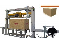 5. 四組或多組儲帶盤,可以裝載重量20 kg,尺寸為405 x600160mm的打包帶卷,附有儲帶組。每個帶盤帶有固定帶子的側板。帶有煞車控制,避免慣性作用。并且有數個滑輪儲帶槽,可以收回每次打帶后多馀的帶子。