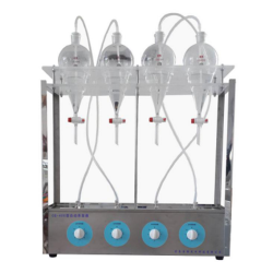 按照中華人民共和國國家標準“HJ637-2018水質(zhì)石油類和動植物油的測定紅外光度法"來測定油類時,需要對水樣進行萃取。將分液漏斗置于自動萃取器架上,被萃取樣品和萃取溶劑都倒入分液漏斗中,由于萃取溶劑的比重比水大,在重力的作用下會固定漏斗底部的位置,但當(dāng)氣泵向漏斗底部吹氣時,萃取溶劑就會翻騰向上與漏斗上方被萃取樣品快速充分混合,氣泵的氣量可以自行調(diào)節(jié),總萃取時間可以由時間繼電器控制,萃取溶劑就可以充分將油類物質(zhì)從水中萃取出來。