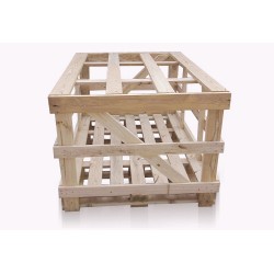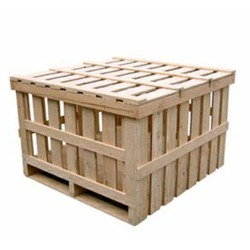 箱面用木板條等釘合制成的柵欄狀木箱。鋼絲捆扎箱用鋼絲將箱板連接組成各箱面,并用箱檔加固制成的木箱。