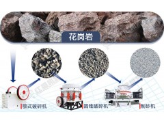 **步,粗*破碎后的花崗巖經(jīng)篩分后,再將小塊花崗巖送至反擊式破碎機或圓錐式破碎機,對其進行中細(xì)破碎和整形。
