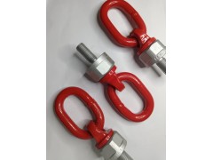 萬向旋轉吊環能實現水平360度旋轉和上下180度翻轉,任意方向四倍安全系數。相比傳統的吊環螺絲,解決了傳統吊環易松動問題、更靈活、更能全方面滿足組合吊裝的需求。原料材質方面,采用合金鋼材質。