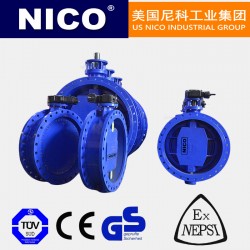 美國尼科NICO進口雙偏心軟密封蝶閥為偏心金屬密封結構,密封形式為軟密封對金屬,可調換金屬密封圈對金屬密封,不銹鋼板與石墨復合板密封圈對金屬密封,其結構特征為在閥桿軸心既偏離蝶板中心、也偏離本體中心,雙偏心的效果使閥門被開啟后蝶板能迅即脫離閥座、大幅度地消除了蝶板與閥座的不必要的過度擠壓、刮擦現象、減輕了開啟阻距、降低了磨損、提高了閥座壽命。在蝶閥閥體圓柱形通道內,圓盤形蝶板繞著軸線旋轉,旋轉角度為0°~90°之間,旋轉到90°時,閥門則是全開狀態。給排水、污水、食品、供暖、燃氣、船舶、水電、冶金、能源系統以及輕紡等行業,特別適用于單向密封和閥體易銹蝕場合,作調節流量和截流介質。